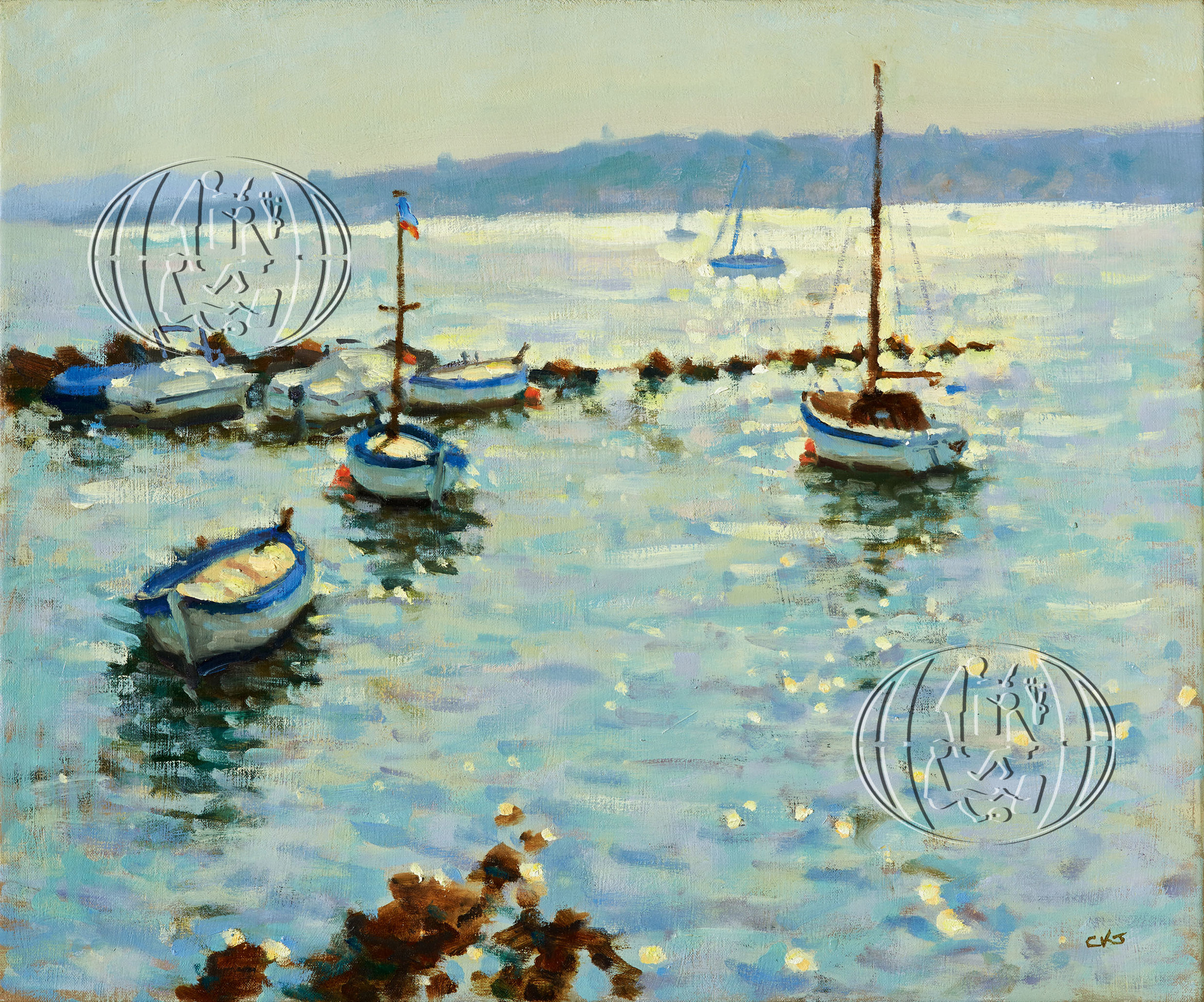 Boats moored in a bay