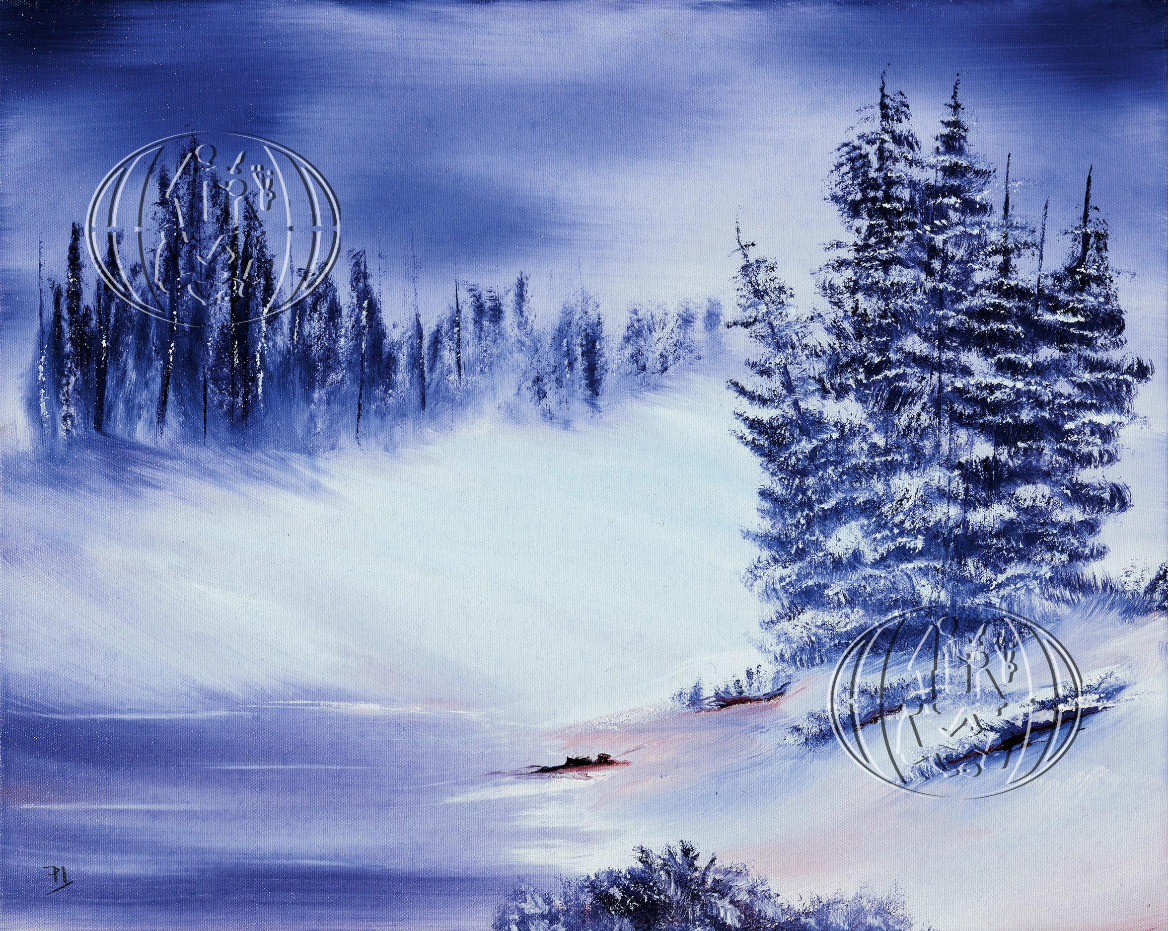 Snowy river at night