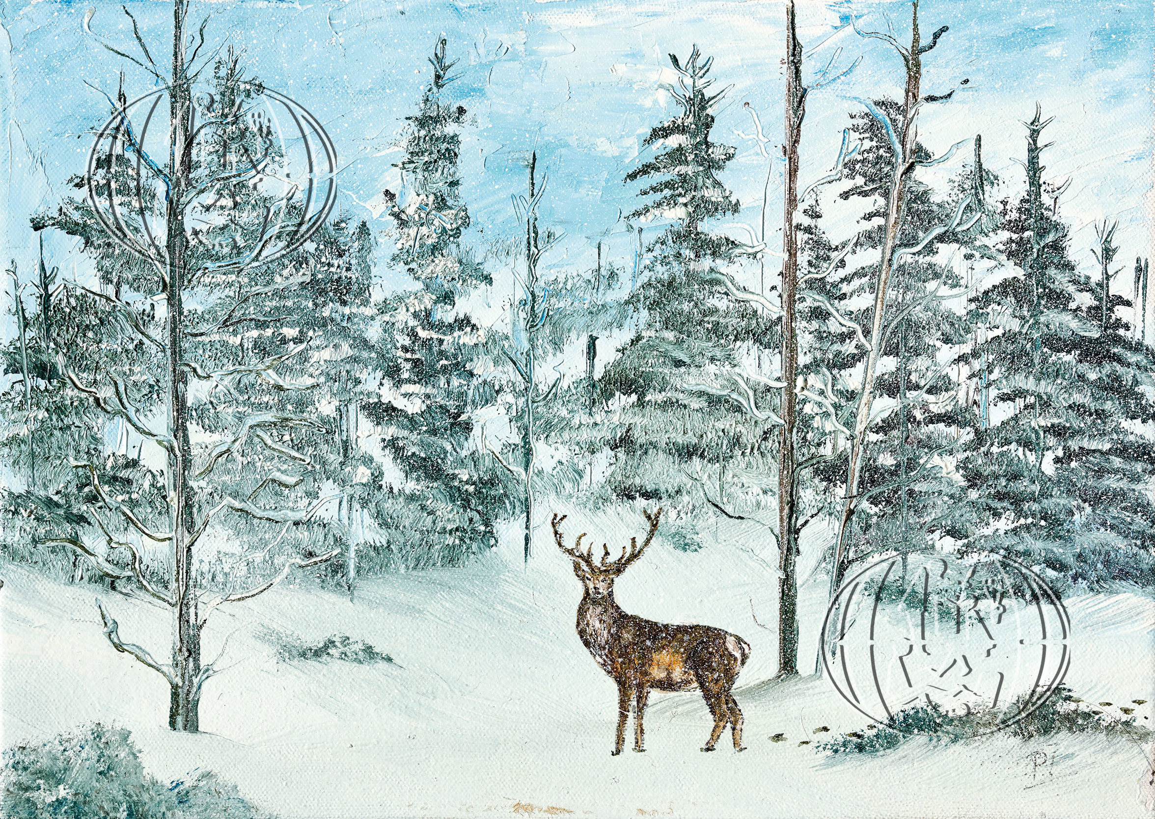 Stag in snowy woodland